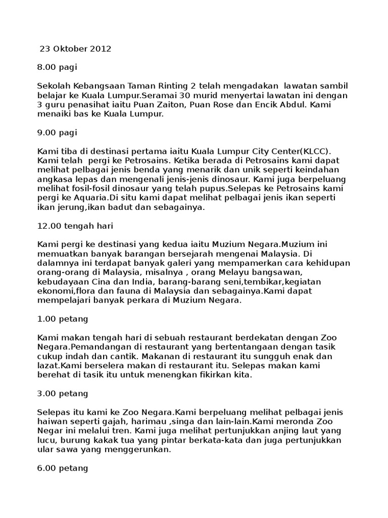 Contoh karangan laporan pt3 lawatan sambil belajar pdf from.